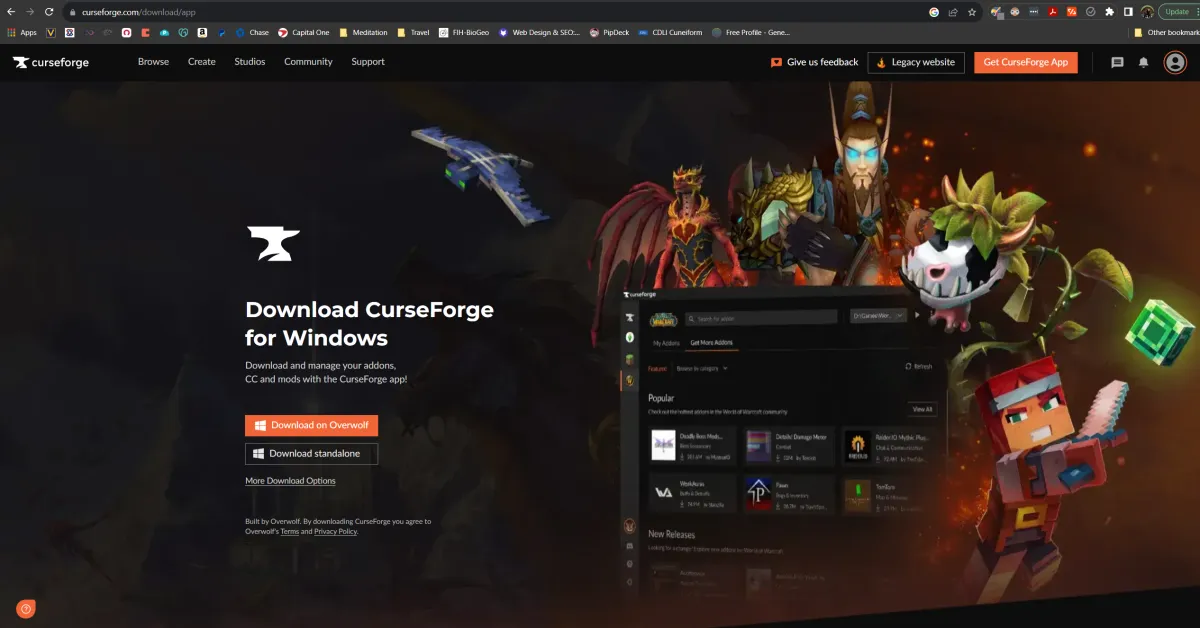 When on curse forge press on download app button. There are other download links for other operating systems below.