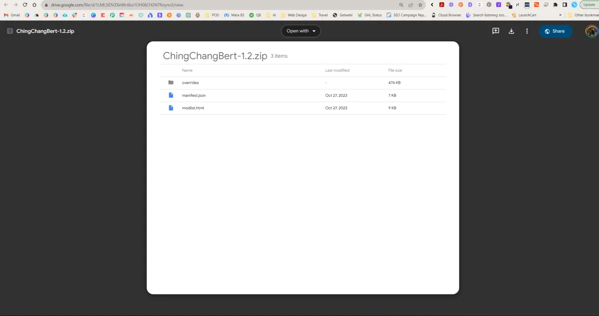 Download the ching chang and bert 1.10 zip and save it to a place you will be able to find it.